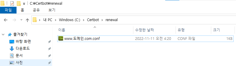 4-2. 윈도우 탐색기에서 C:\Certbot\renewal 폴더로 이동하세요.