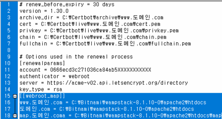 Processing C:\Certbot\renewal\www.도메인.com.conf <-SSL 인증서 conf(설정) 파일 프로세싱 중