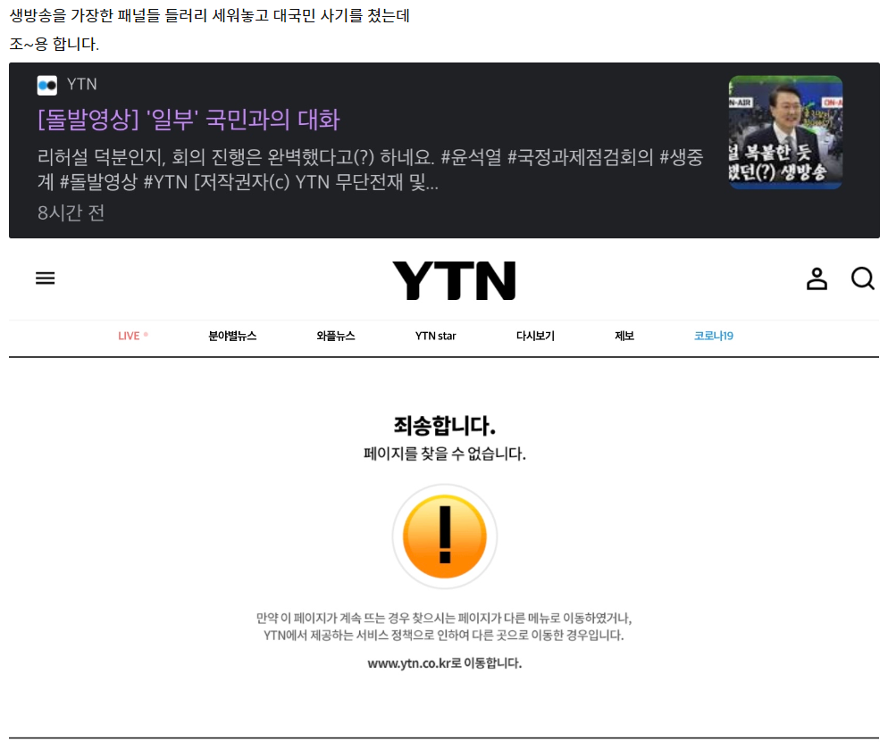 그리고 YTN에서는 돌발영상 삭제 엔딩~~~