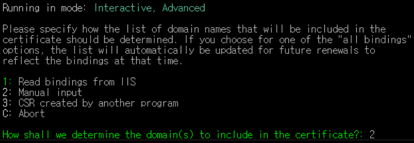 wacs.exe4. M 선택(N의 경우 IIS 서버 전용이고 우리는 아파치서버를 구동중이므로 M 선택)