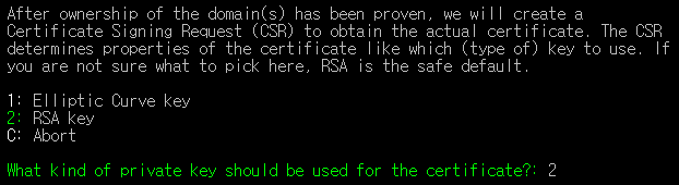 ACME 서버에서 우리가 도메인 소유자인지 확인을 해야 한다. 이 도메인 소유 확인 과정이 끝나야 .pem(인증키) 파일을 비로소 받을 수 있다. 대다수가 선택하는 1번 또는 3번 방법 중에 1번을 선택했다.